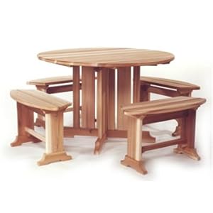 This charming round picnic table set comes complete with 4 detached benches making it a favorite for patios and small areas.