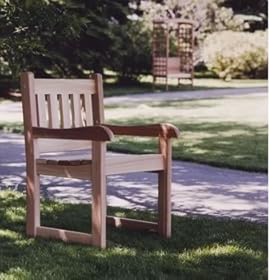 Cedar Armchair - ATC - AC22u Patio ChairExcellent Outdoor Dining Chair The air fills with the sounds of happy laughter and children splashing around in the backyard pool. Nothing says summer more than those fun-filled afternoons of childhood, where you can simply let loose and enjoy life. The slap of wet feet against the deck signals that lunch time is fast approaching, so grab one of these sturdy chairs and enjoy the noon time meal. These cedar armchairs will make a beautiful addition to any backyard dining experience. Their solid wood construction allows anyone to maneuver in and out of them with ease, which is very important when you have rambunctious children eager to dive back into the pool. Cedar Arm Chair Features Include: